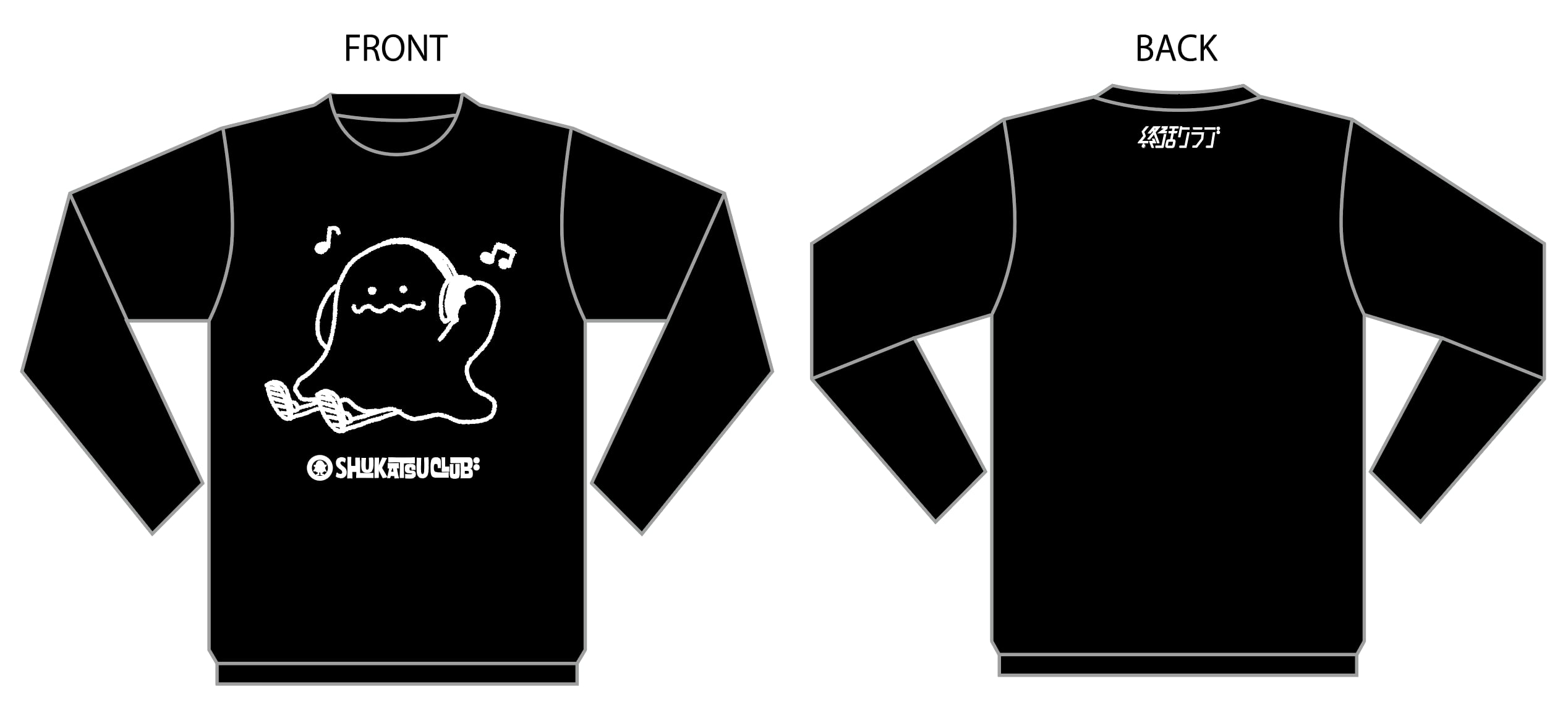ヘッドフォンを着けたやさおばが描かれた長袖Tシャツ。 バックの首元には新ロゴが入っています!